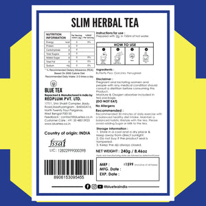 Slim Tea is a potent blend of Butterfly Pea, Garcinia, and fenugreek that supports metabolism, reduces bloating, melts away fat, and flushes out toxins, reinforcing your fitness goals.
