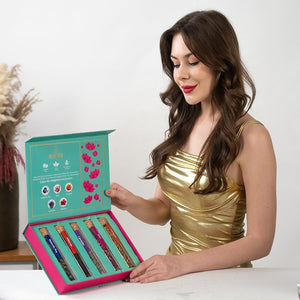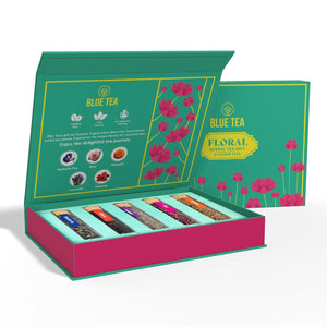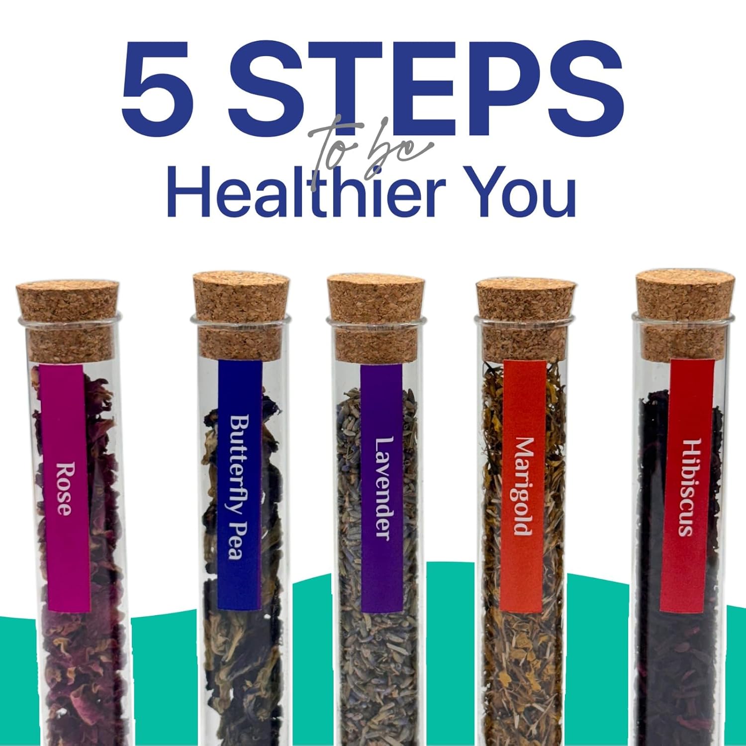 Entice your taste buds with five unique flower teas, each housed in elegant glass tubes, turning your tea ritual into a sensory escape. From the mesmerizing blue of Butterfly Pea to the calming aroma of Lavender, each cup is crafted to delight your senses and uplift your spirit.