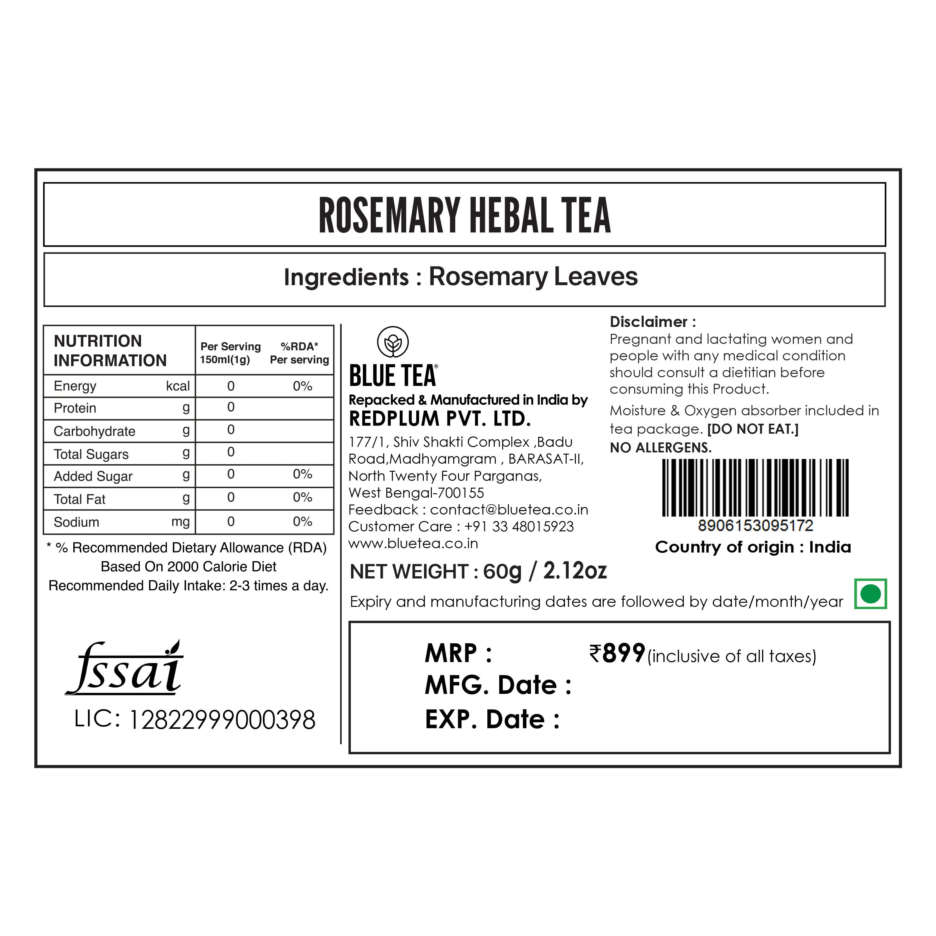 Awaken your senses with the bold, aromatic notes of Rosemary Tea, made from 100% pure rosemary leaves. Traditionally used to enhance memory, boost circulation, and aid digestion, this caffeine-free herbal brew offers a refreshing way to energize your body and mind—naturally.