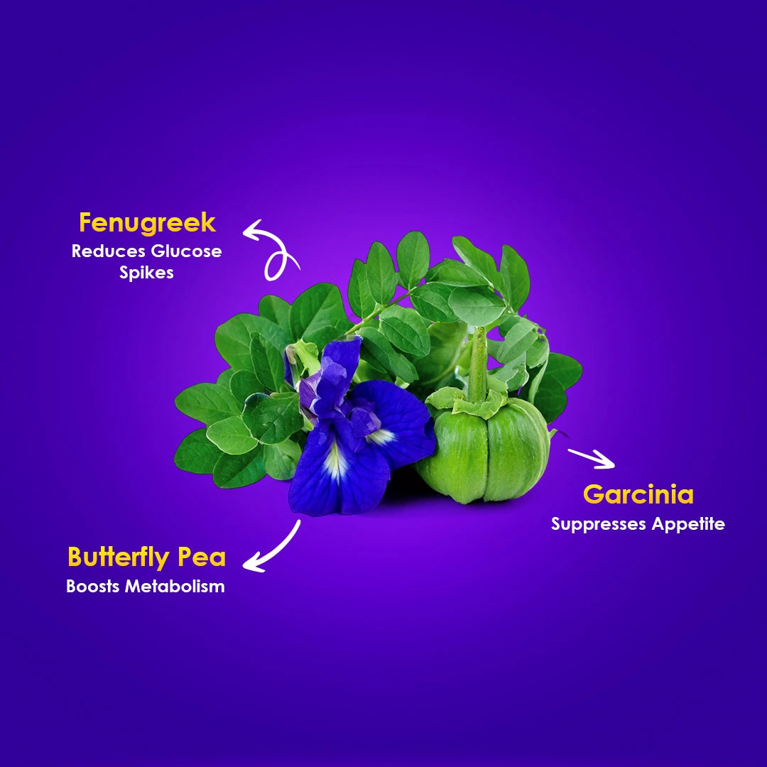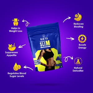 Slim Tea is a potent blend of Butterfly Pea, Garcinia, and fenugreek that supports metabolism, reduces bloating, melts away fat, and flushes out toxins, reinforcing your fitness goals.