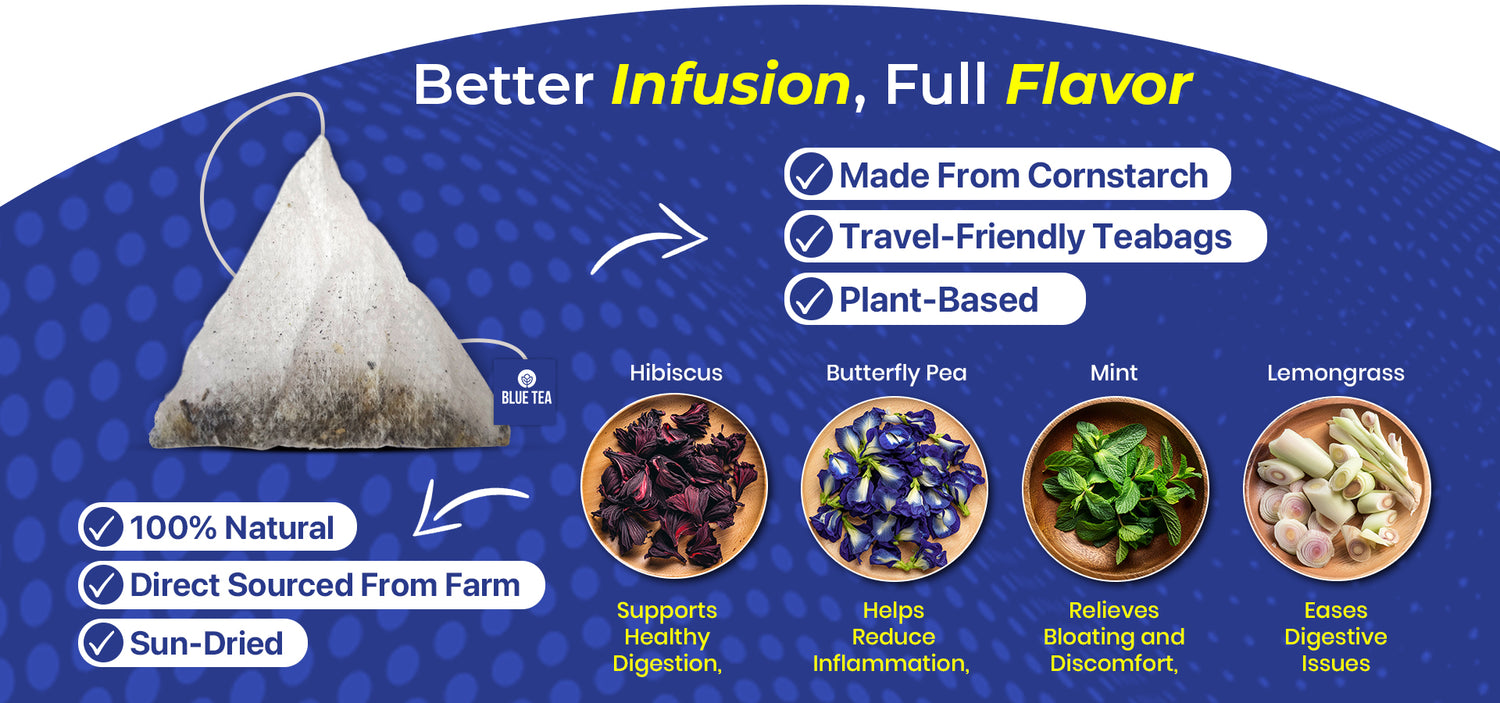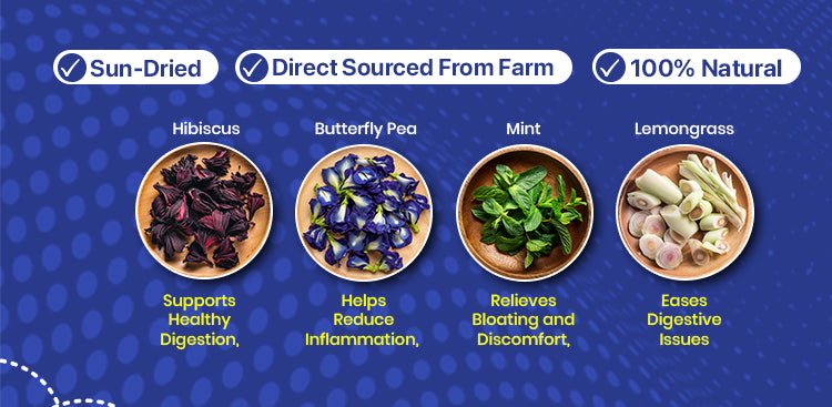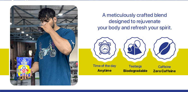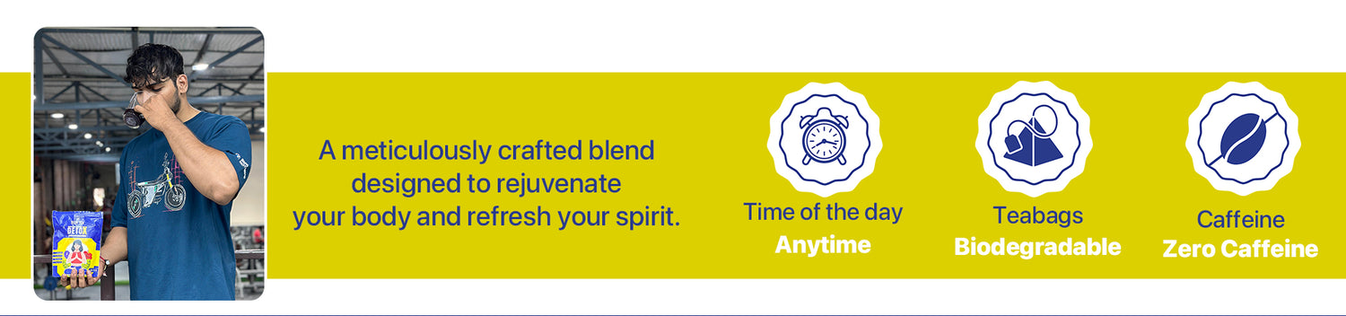 Detox tea is a harmonious blend of nature’s finest herbs that helps detoxify your body naturally, by gently flushing off toxins from your system. This supports healthy digestion while promoting a sense of well-being.