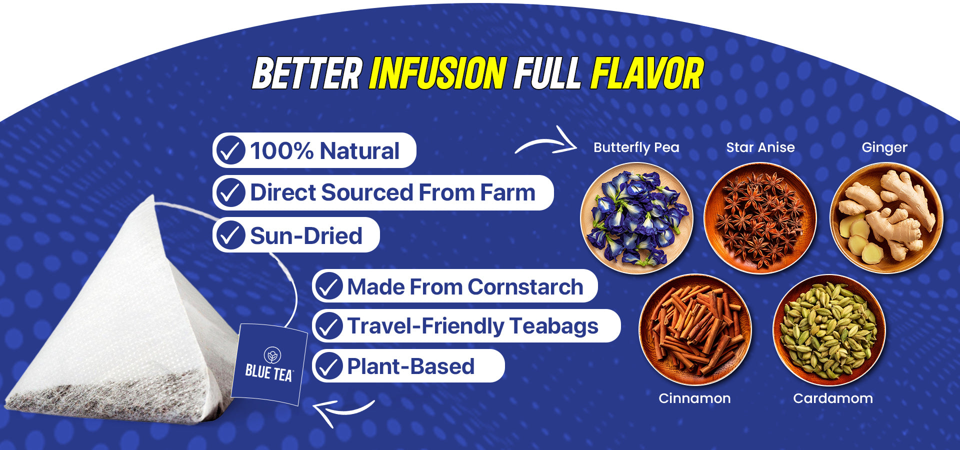 • Butterfly Pea Flowers: Rich in antioxidants (anthocyanins) that promote fat breakdown and improve skin health.