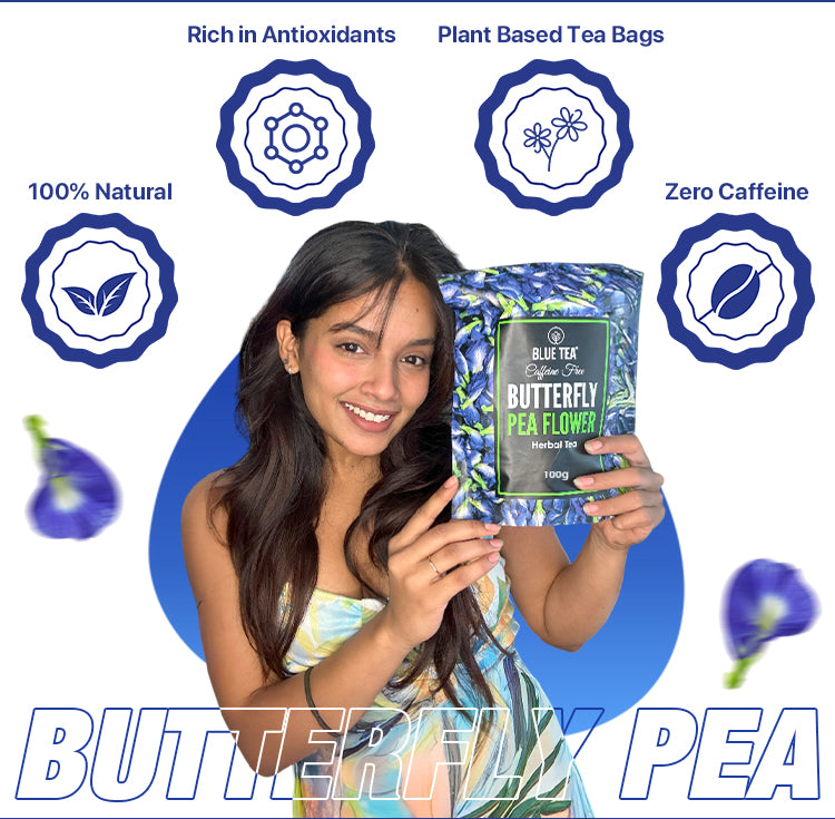 Made from the vibrant petals of the Clitoria Ternatea plant, known as Aparajita in Sanskrit, Butterfly Pea Flower Tea is a natural powerhouse of antioxidants.