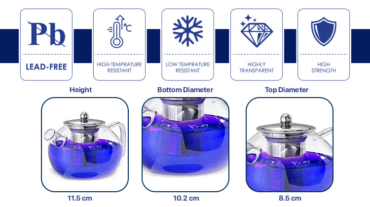 Perfect for brewing multiple beverages, made from durable borosilicate glass, this kettle is heat resistant. Equipped with a high-quality stainless steel infuser, the matching stainless steel lid keeps your tea hot and fresh.