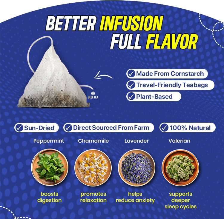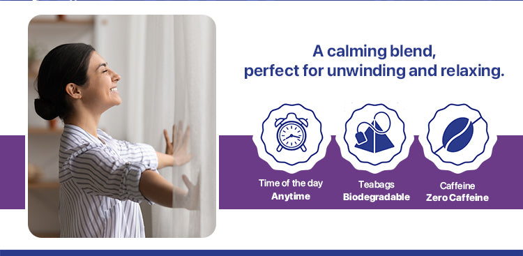 A calming blend of Sleep Time Tea, crafted to promote deep relaxation and restful sleep, allowing you to wake up refreshed and revitalized.