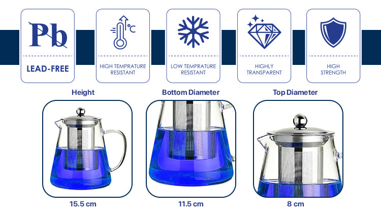 This glass kettle holds up to 950ml, perfect for brewing multiple cups of tea or other beverages. Crafted from durable borosilicate glass, this teapot is heat resistant and designed to withstand high temperatures without cracking.