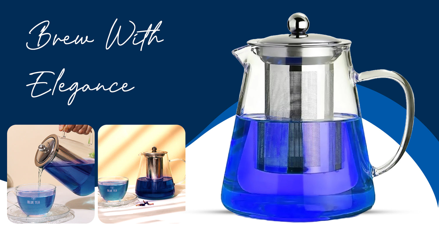 Tall Glass Teapot Kettle with Stainless Steel Infuser & Lid