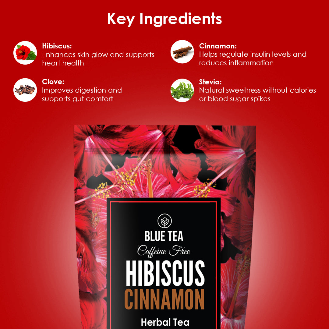 • Hibiscus Cinnamon: A refreshing mid-day tea that offers a gentle energy boost, provides a natural glow, and maintains balanced blood sugar levels